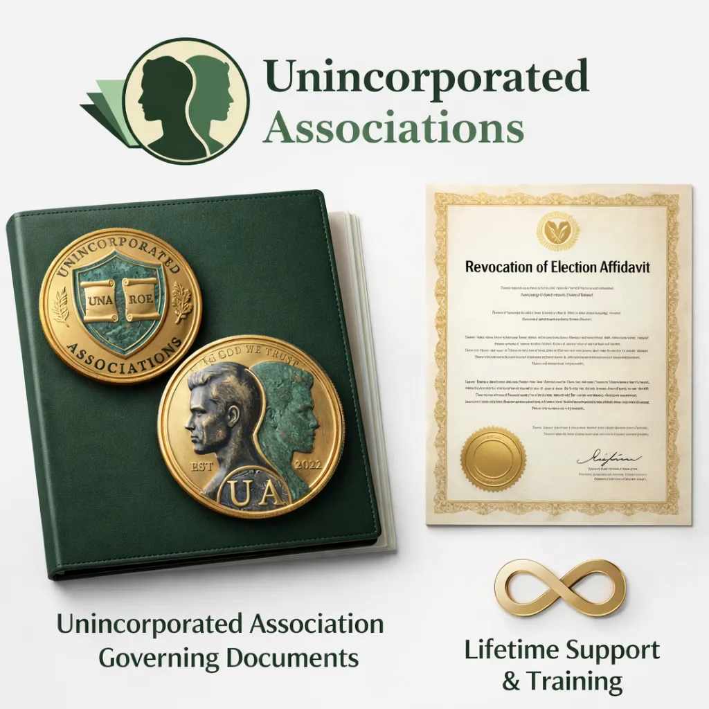 Unincorporated Associations (UA) is a legal consultancy firm operating as a Private Member Association under the protection of the Bill of Rights. By using this site, all users agree to the UA member agreement. All materials on this website are provided for informational purposes only and do not contain legal advise, legal opinions, or other form of advise regarding any specific facts or circumstances. Communication of information through this website (1) does not create or constitute an attorney-client relationship, (2) is not intended as a solicitation to create an attorney-client relationship to provide legal services as to any particular matter, and (3) is not intended to convey or constitute legal advice, or to provide a substitute for obtaining legal advice.